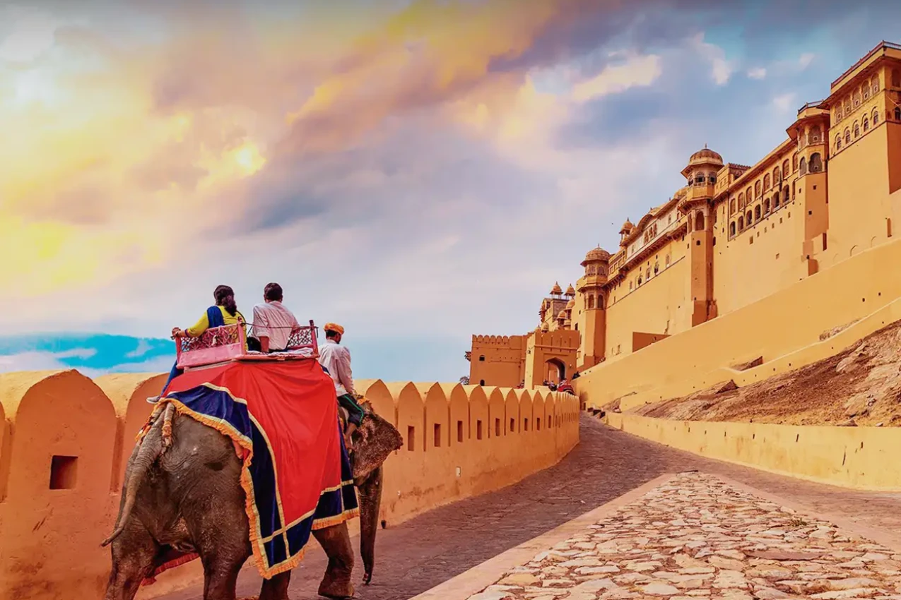 Após o café da manhã, visita ao majestoso Amber Fort, com subida em jipe e vistas panorâmicas deslumbrantes.