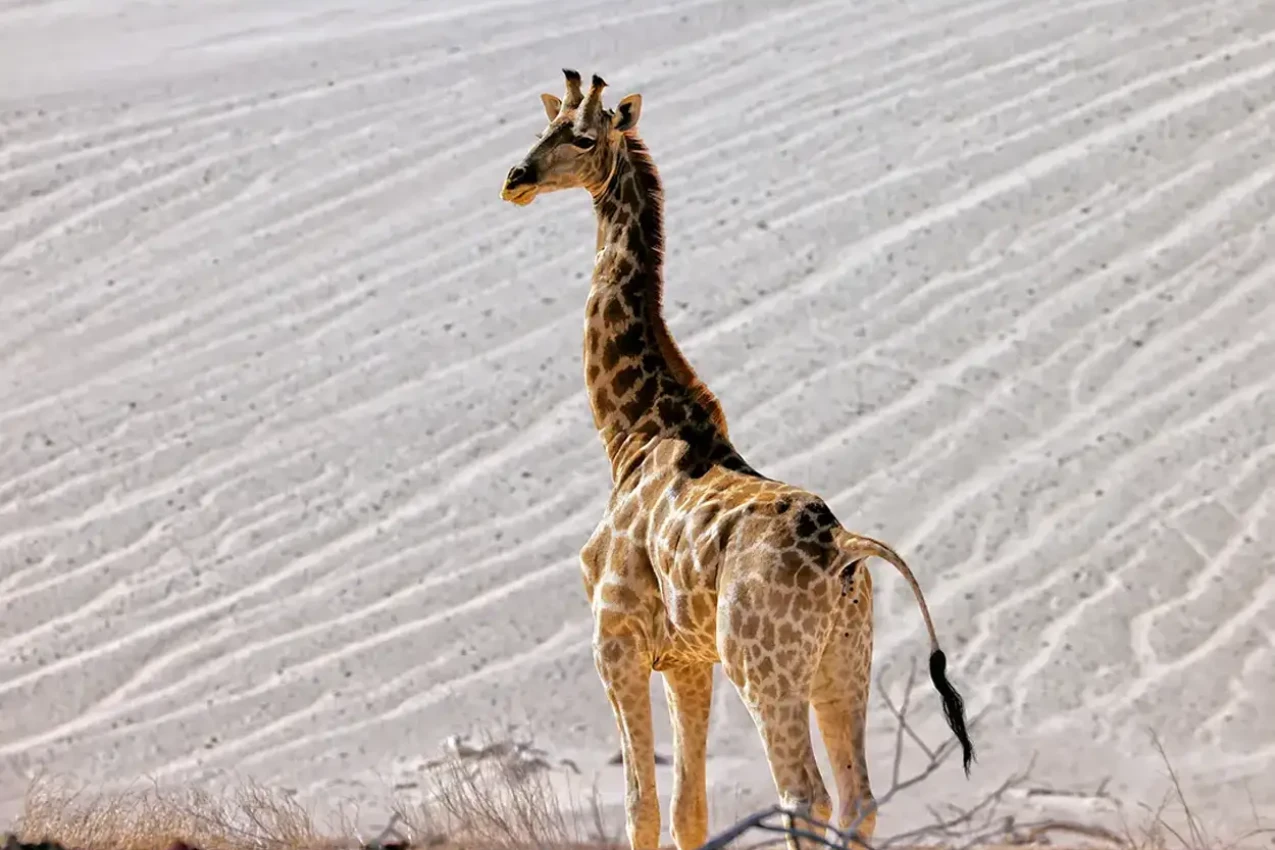 Explore a extraordinária paisagem e seus habitantes durante atividades compartilhadas organizadas pelo acampamento, como passeios panorâmicos pela natureza, busca por elefantes adaptados ao deserto e outros animais selvagens, e passeios pela natureza.